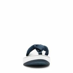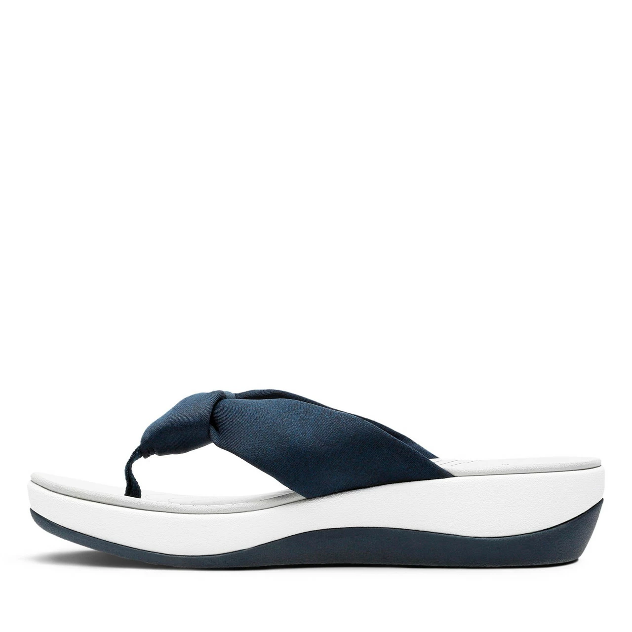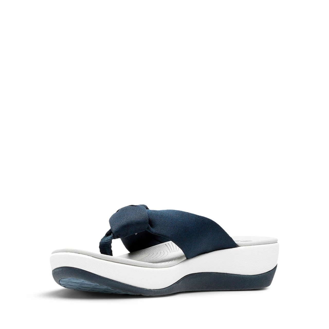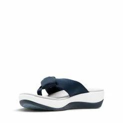 The Arla Glison from the Clarksยฎ Cloudsteppersโข Collection provides the best of comfort technology with classic feminine appeal. A heathered fabric upper gives it a playful edge and feels delicately soft between the toes. A Clarks Cushion Softโข with OrthoLiteยฎ footbed ensures optimal comfort while an EVA midsole keeps it feather light. An ultra-wearable flip-flop with no shortage of personality.