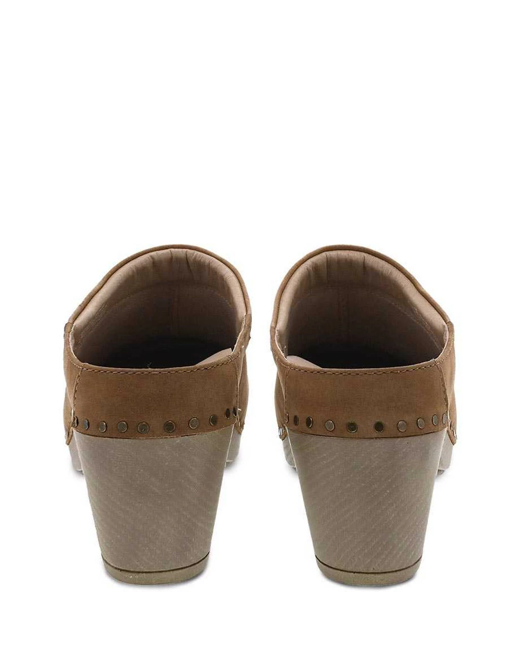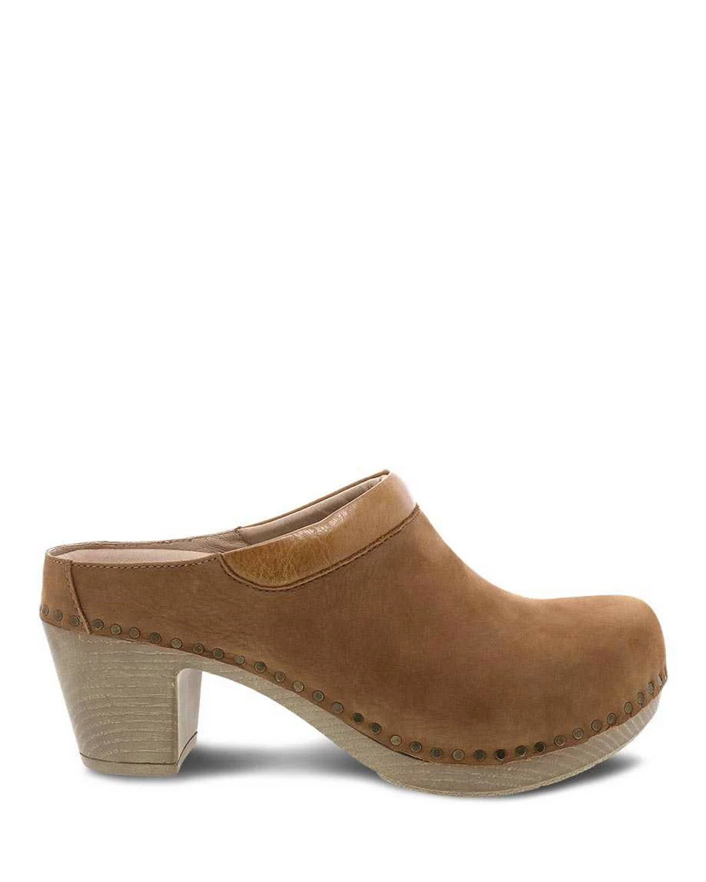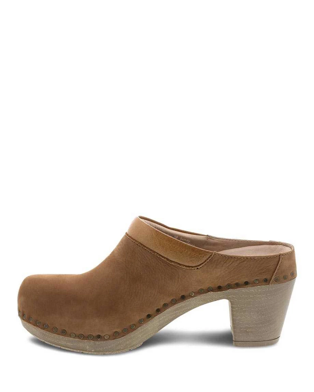Dress up your day in the Sammy mule. This open back heeled clog features nailhead trim detail and Nubuck uppers, treated withΒ 3M ScotchgardΒ protector for stain resistance, and our signature stapled construction. A leather covered, removable energy return EVA footbed withΒ Dansko Natural arch technologyΒ offers added comfort and support, while the lightweightΒ PU outsoleΒ provides long-lasting wear.