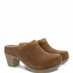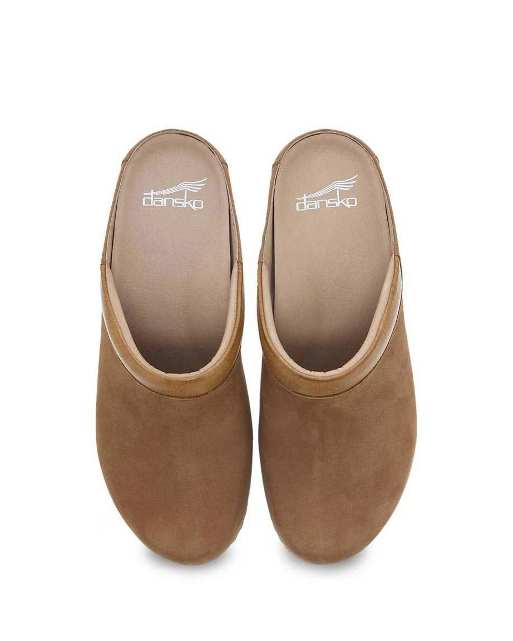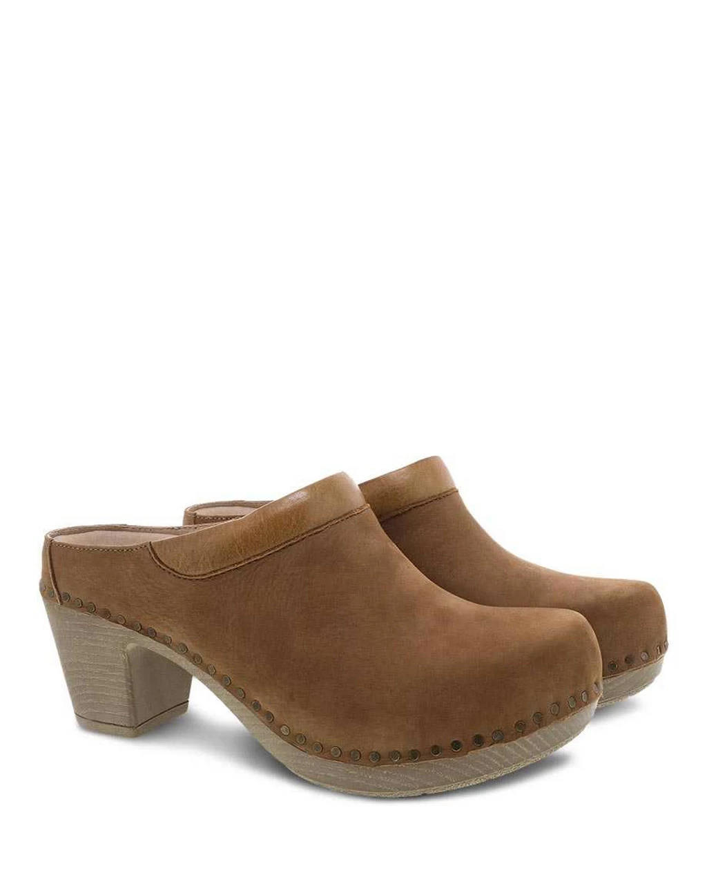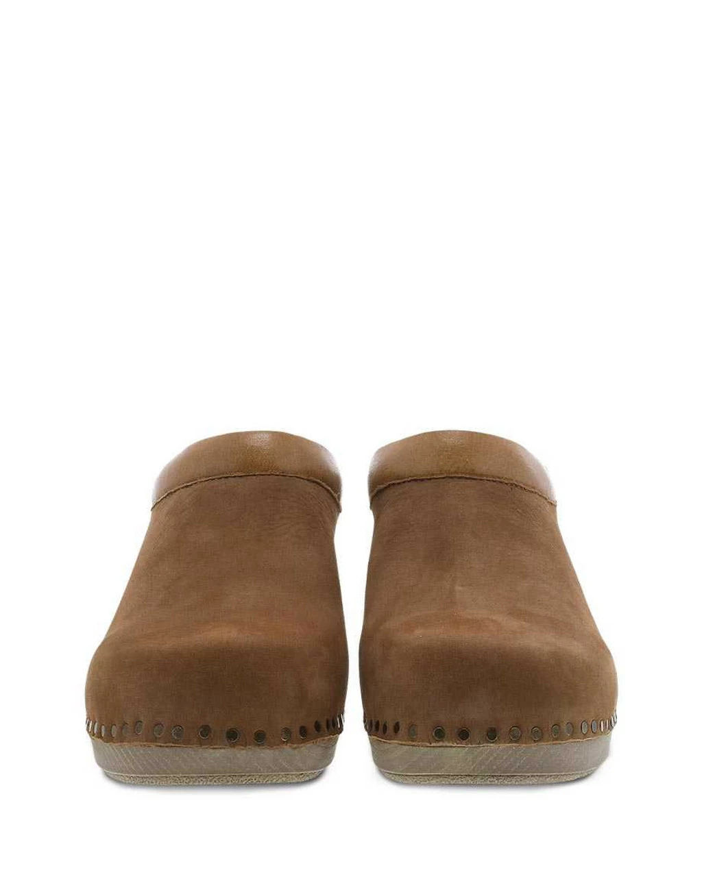Dress up your day in the Sammy mule. This open back heeled clog features nailhead trim detail and Nubuck uppers, treated withΒ 3M ScotchgardΒ protector for stain resistance, and our signature stapled construction. A leather covered, removable energy return EVA footbed withΒ Dansko Natural arch technologyΒ offers added comfort and support, while the lightweightΒ PU outsoleΒ provides long-lasting wear.