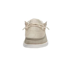 Classic moccasin construction in a breathable organic cotton canvas, with hemp reinforcement at the heel. Soft, cotton-fiber lining. Recycled cork, recycled rubber, and organic cotton details.