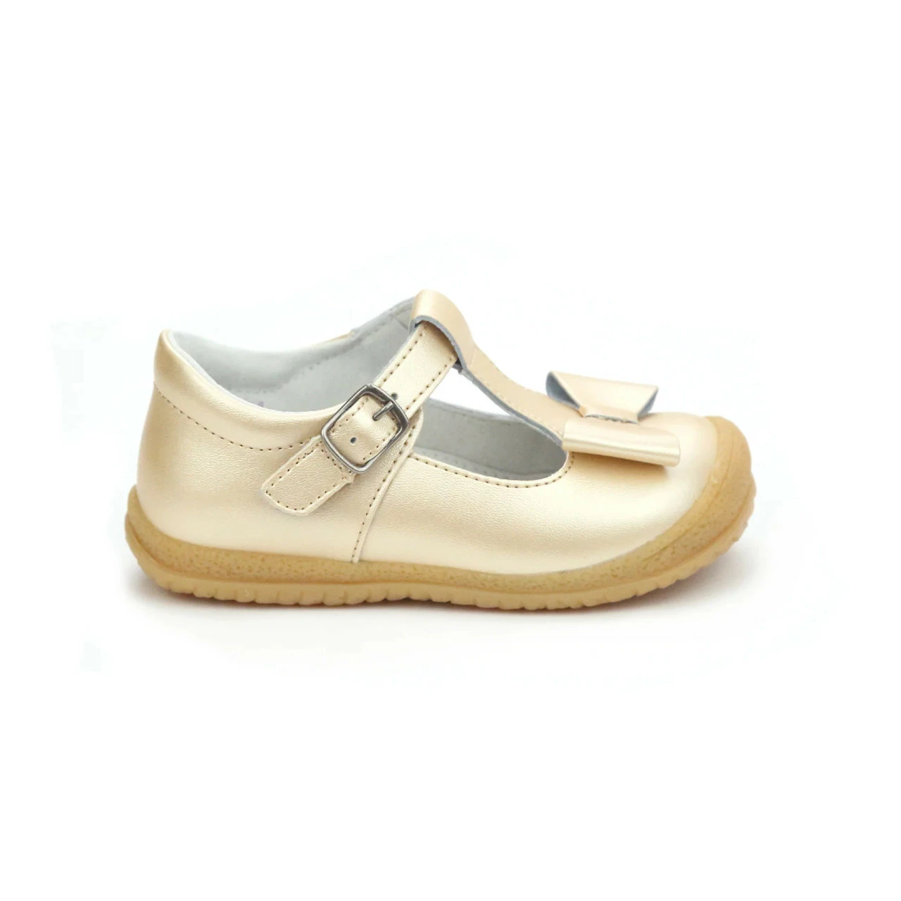 L’Amour Girls Shimmer Bow T-Strap Mary Jane – Champagne
