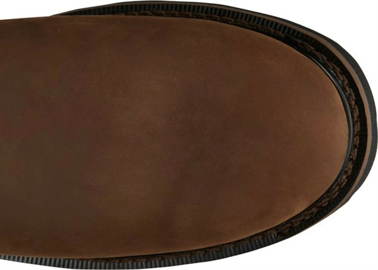 Convenience and durability, both are found in the Justin Stampedeโข Drywall 10″ tall Men’s pull-on work boot for easy access.