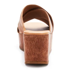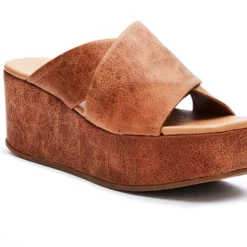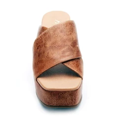 Crossband platform wedge with a squared off toe.
