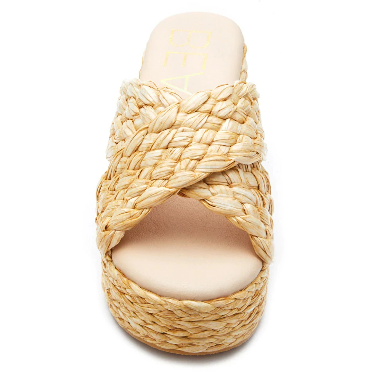 Please note: due to the nature of the raffia used on this style, each pair will look similar but not identical to the one pictured. These are considered natural variances and part of the intended look.