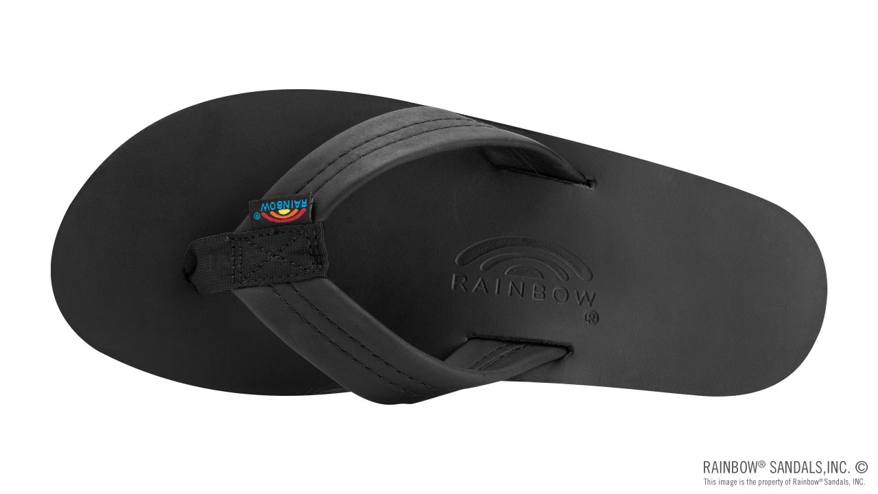 The single layer classic leather sandal is made of top grade leather that has a polished top sole giving it a fresh clean look. It is also embossed with the Rainbow® logo. The 1″ strap, also classic leather is double stitched, and the nylon toe piece is secured with a box X stitch, all using bonded nylon thread.