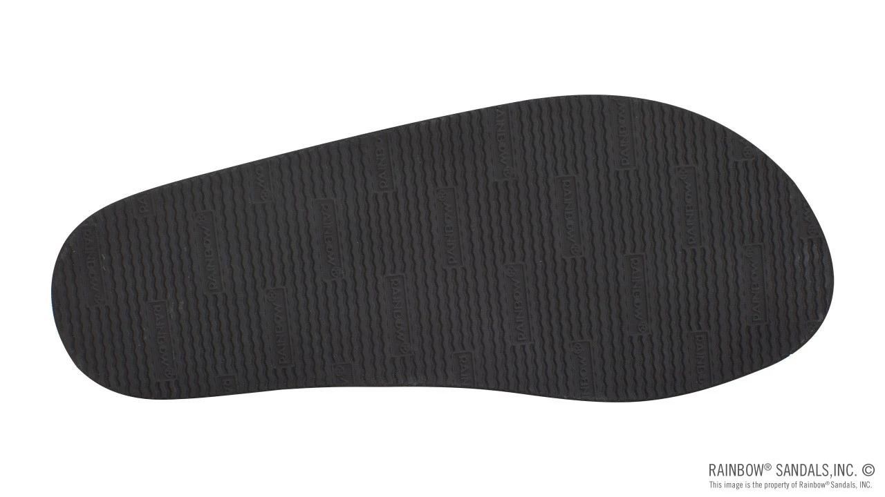 The single layer midsole and arch support is triple glued for maximum durability to our non-slip Rainbowยฎ bottom. We finish it off with the Original Rainbowยฎ woven label on the right strap, the mark of a genuine Rainbowยฎ Sandal.