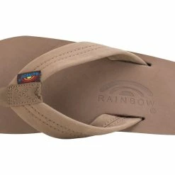 The top sole is premier nubuck leather, and is embossed with the Rainbowยฎ logo. The 1″ premier leather strap is double stitched, and the nylon toe piece is secured with a box X stitch, all sewn with bonded nylon thread.