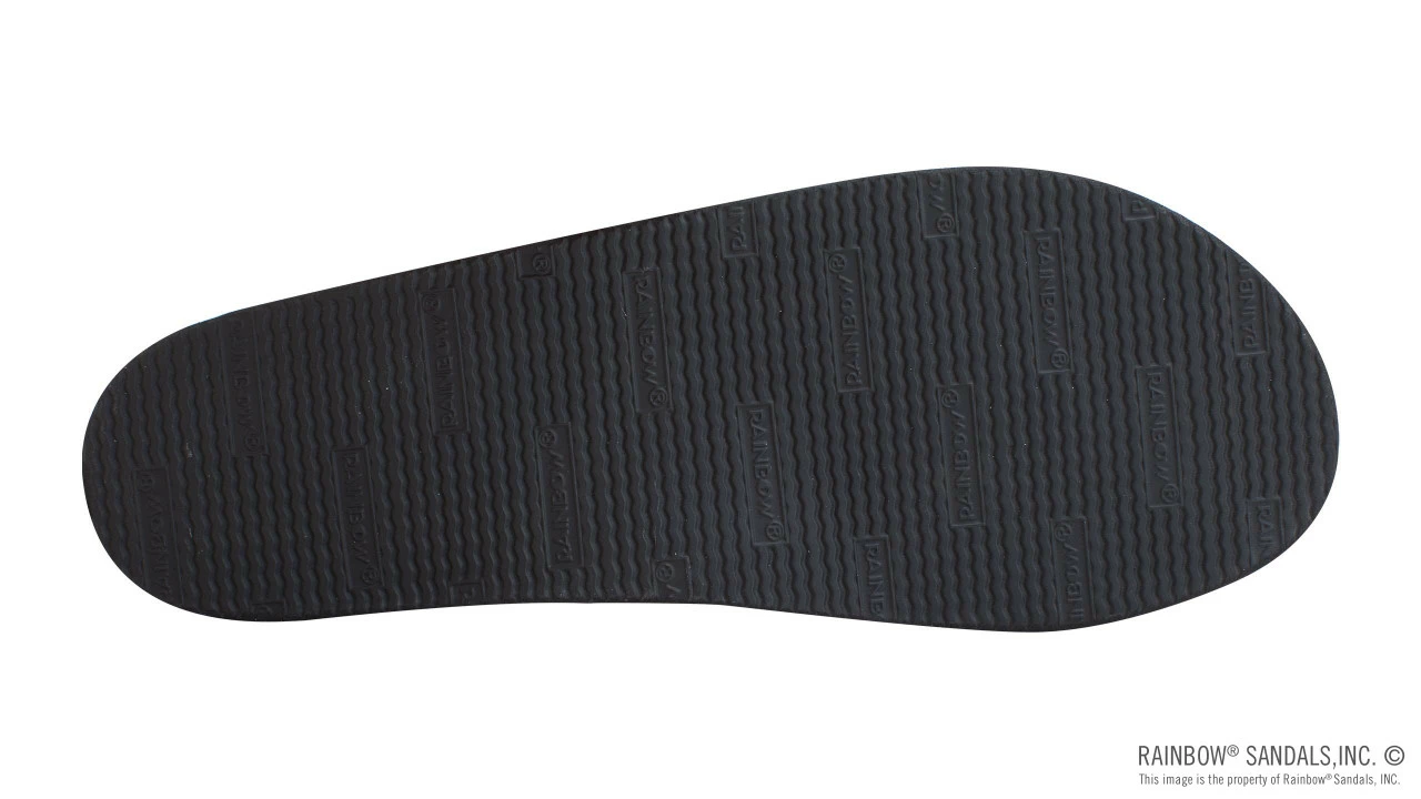 The single layer mid sole and arch support is triple glued for maximum durability to our non-slip Rainbowยฎ bottom. We finish it off with the Original Rainbowยฎ woven label on the right strap, the mark of a genuine Rainbowยฎ Sandal.