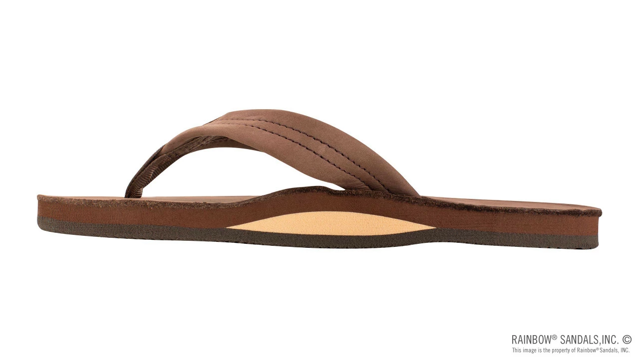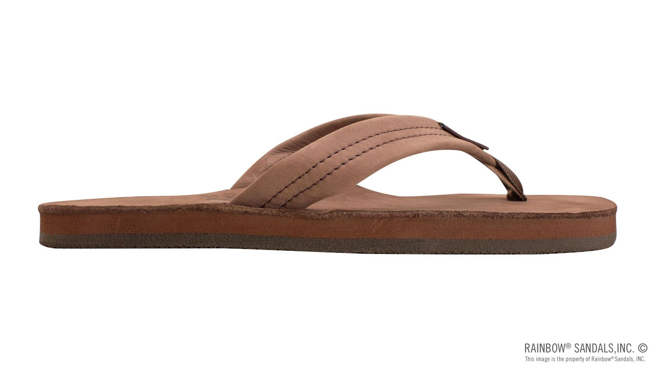 The single layer premier leather sandal is made with top grade nubuck leather; the top sole is embossed with the Rainbow® logo. The 1″ strap, also nubuck leather; is double stitched, and the nylon toe piece is secured with a box X stitch, all using bonded nylon thread.