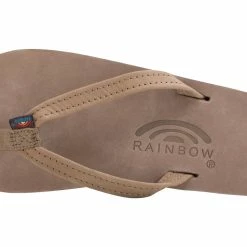 The single layer premier leather sandal is made of top grade nubuck leather; the top sole is embossed with the Rainbow® logo. This model comes with a 1/2″ narrow strap, also nubuck leather; it is double stitched, and the nylon toe piece is secured with a box X stitch, all using bonded nylon thread.