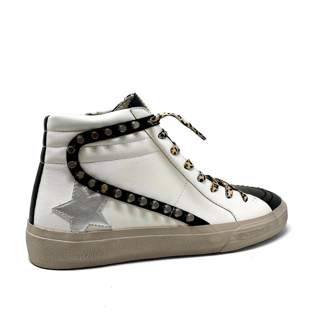 RIRI merges vintage sneakers with a cool rock ‘n roll attitude. Crafted from faux leather, these high-top sneakers deliver a hardcores blend of retro style and cool. Wear yours with everything from dresses to jeans.