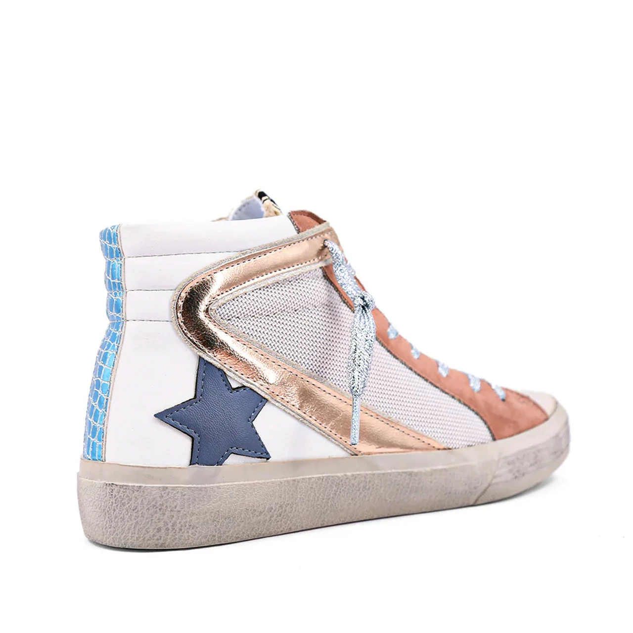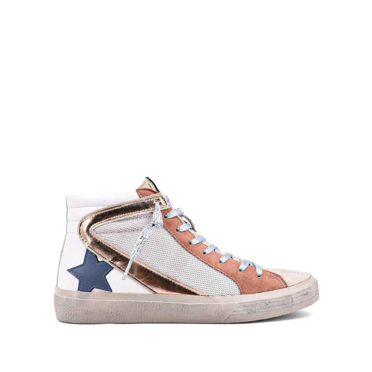 Nodding to vintage basketball sneakers, ROXANNE stands out for its unmistakable style and versatility, with its playful merge of colors and materials. Wear them with anything from skirts to track pants or tailoring.