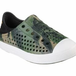 March along in cool style and summer fun with the Skechers Foamies: Guzman Steps – Solar Surge shoe. This marble swirl camo slip-on sculpted sneaker features a Foamiesยฎ flexible EVA perforated upper with a cushioned insole and flexible soft neoprene collar for added comfort.