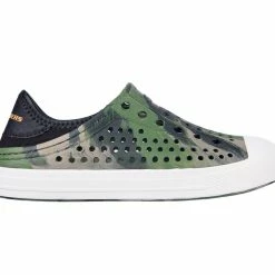 March along in cool style and summer fun with the Skechers Foamies: Guzman Steps – Solar Surge shoe. This marble swirl camo slip-on sculpted sneaker features a Foamies® flexible EVA perforated upper with a cushioned insole and flexible soft neoprene collar for added comfort.