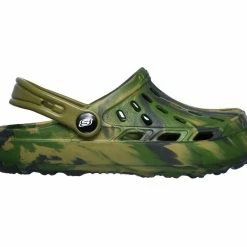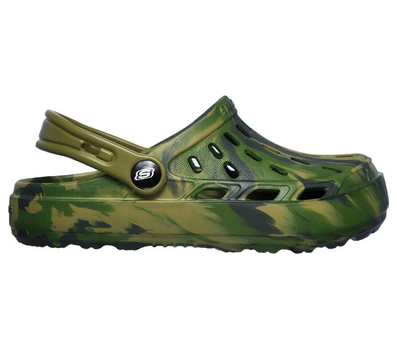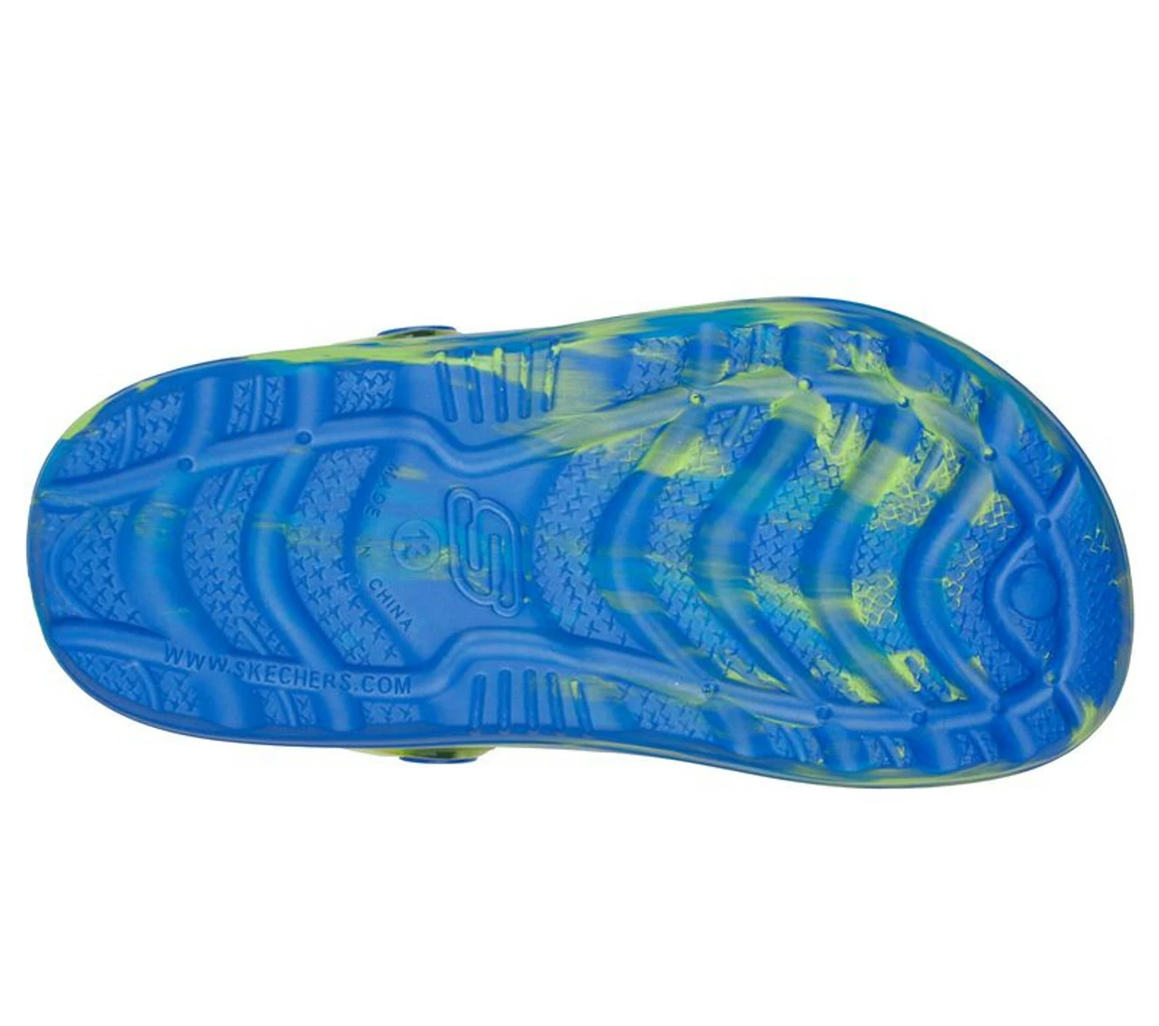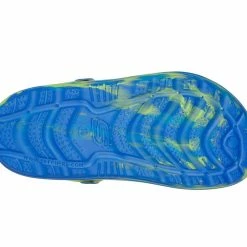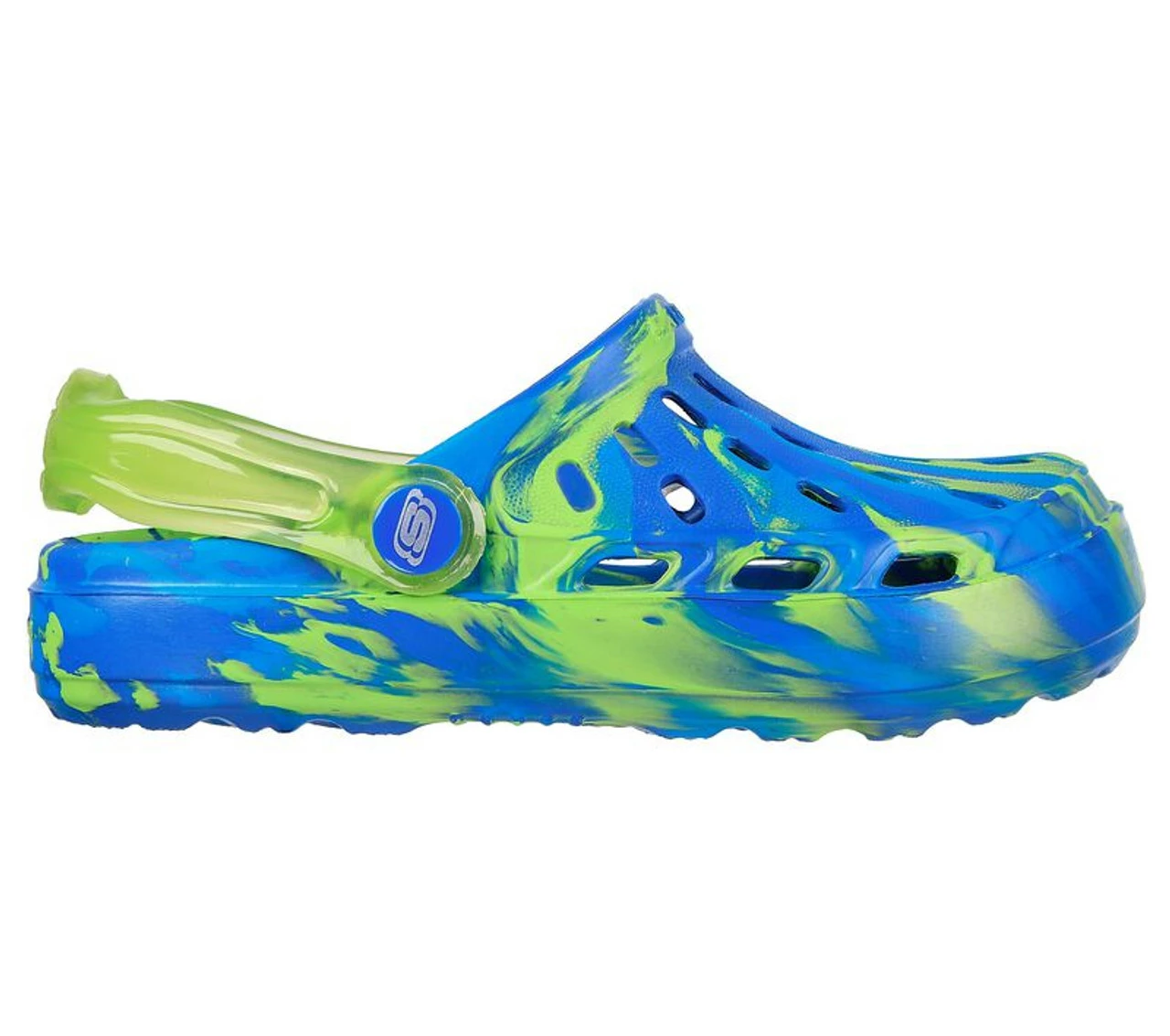 Colorful light-up fun meets feet-loving comfort in Skechers Foamiesยฎ: Swifters – Transluminator. This sculpted comfort slip-on clog features a flexible perforated EVA upper with a marble swirl design, translucent light-up heel strap and a contoured cushioned footbed.