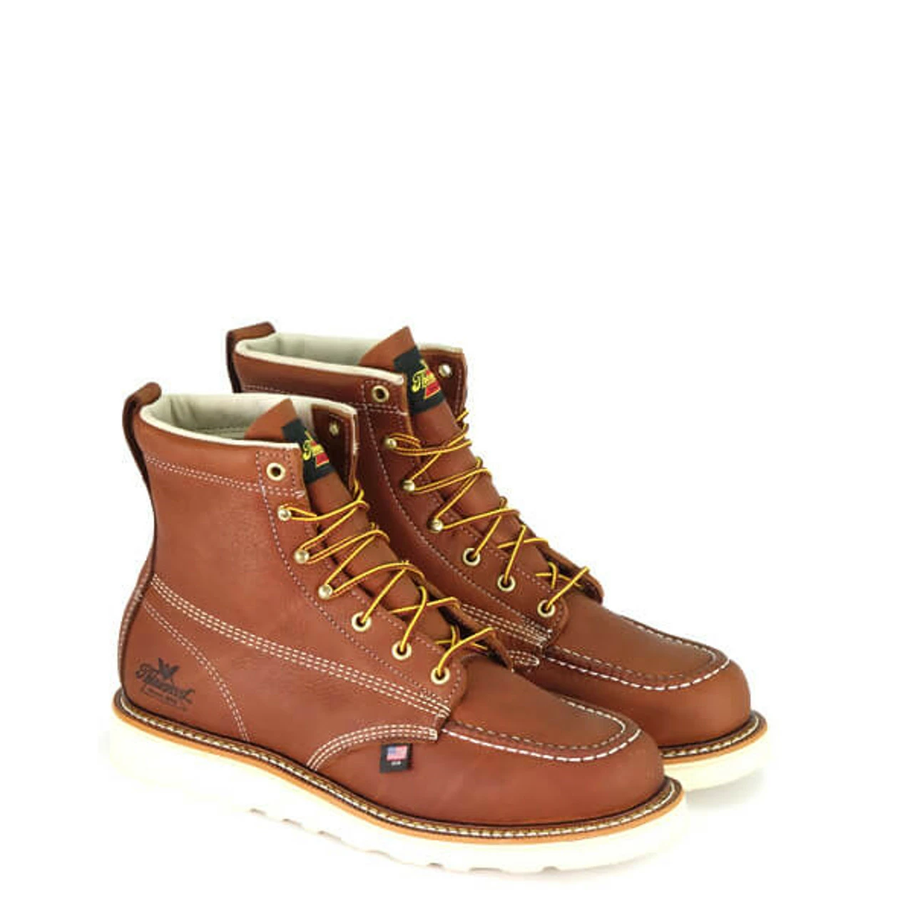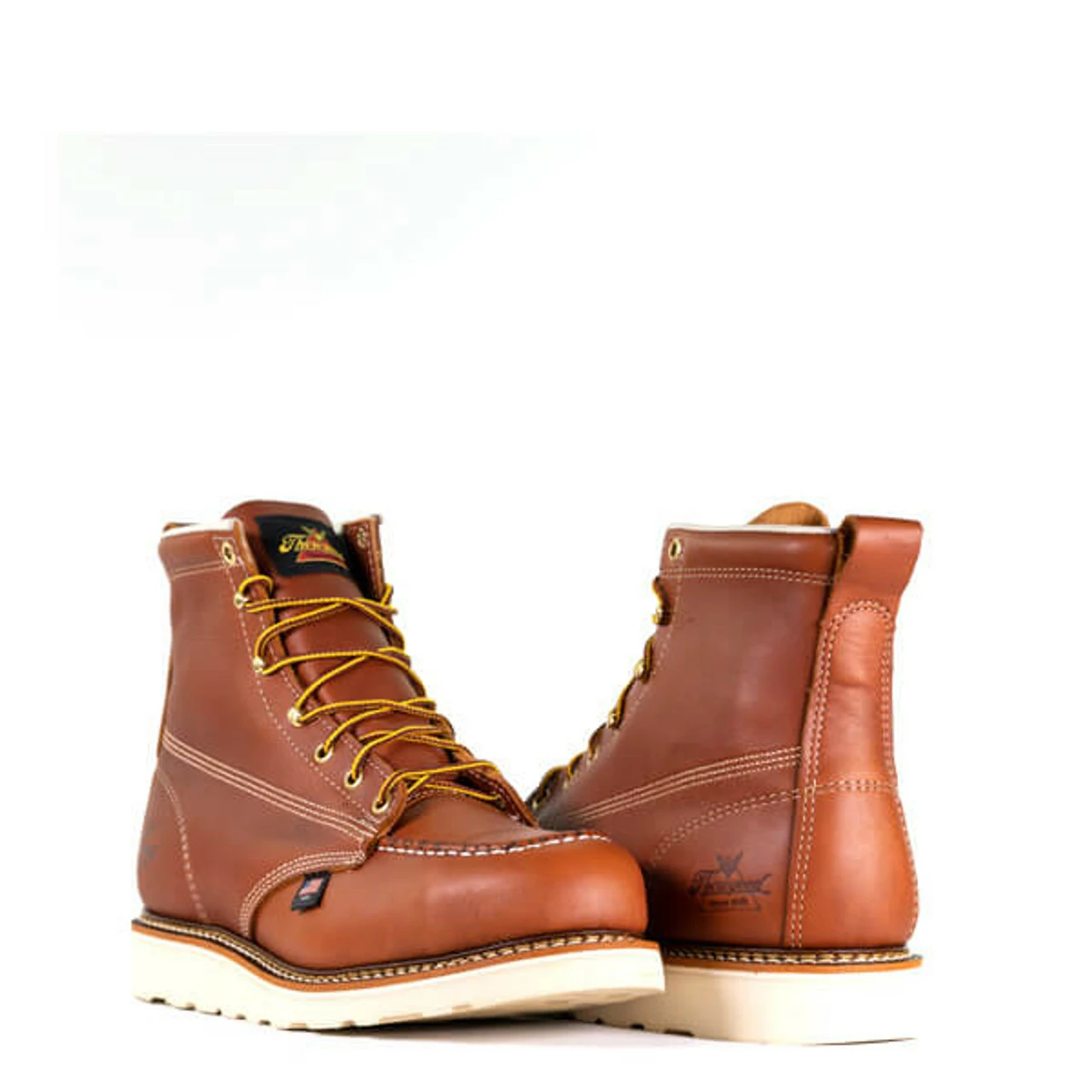Combining safety, comfort, and great looks, the Thorogoodยฎ American Heritage 6โณ Tobacco safety toe work boot will keep you going all day long. Made with stylish, tobacco oil-tanned leather, these moc toe boots allow your feet to breathe, and the MAXWear Wedgeโข outsole keeps you from slipping on wet or muddy surfaces. The American Heritage series is one of our most popular โ and itโs not hard to see why. Youโll look and feel great both on and off the clock while the slip-resistant outsole and steel toe protection give you the security you need. We make comfortable, practical work boots that you want to wear because we know what itโs like to be in your shoes.